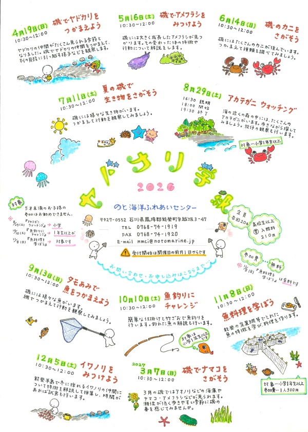 | 2026年 | 4月19日(日) | 10:30~12:00 | 磯でヤドカリをつかまえよう | |